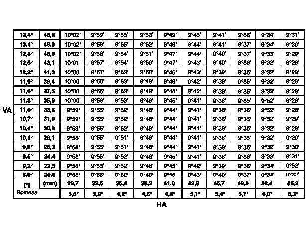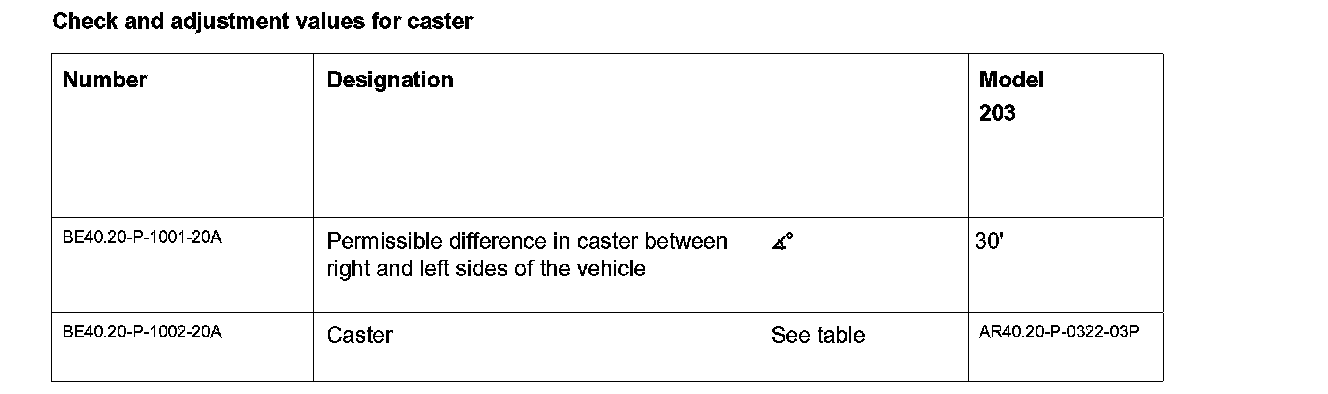 1 Obtain the caster value from the table taking into account the front axle and rear axle level value measured previously.