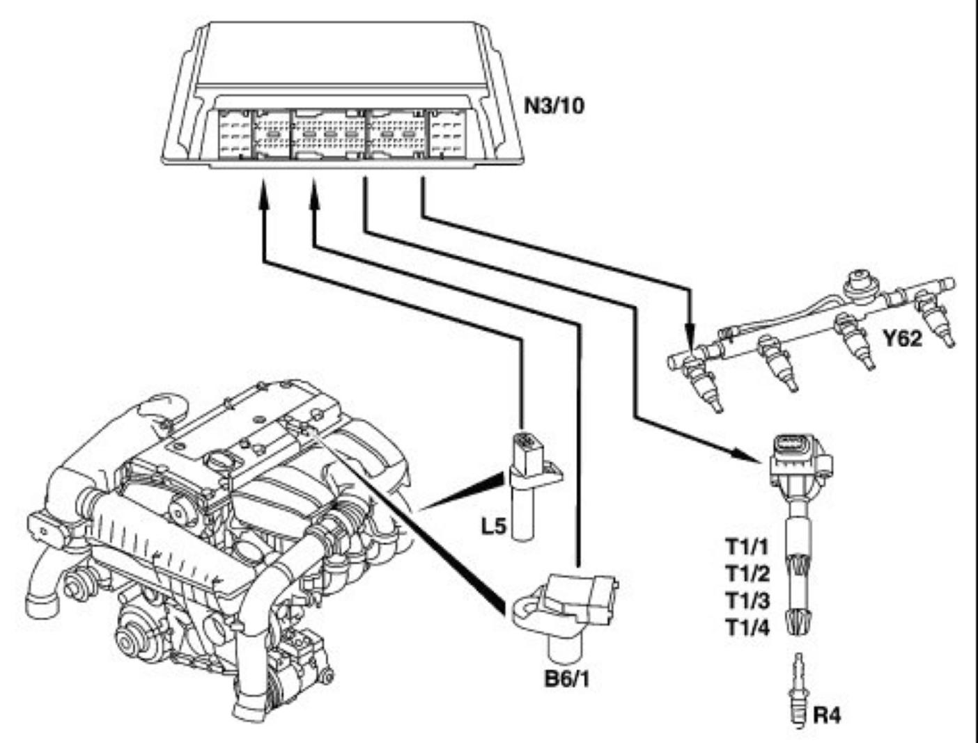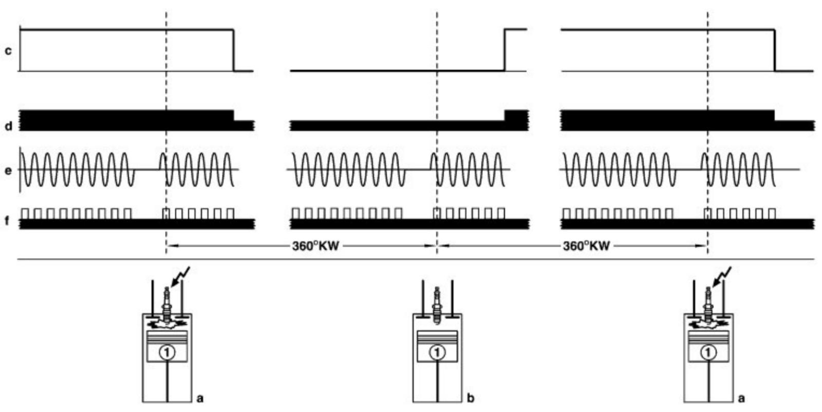 If the signal from the camshaft Hall sensor is at battery voltage ("high") at this moment, the ME-SFI control module processes this in order to detect ignition TDC of cylinder 1.