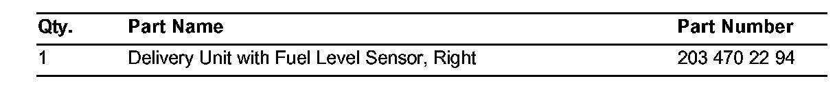 If you encounter instances of customer complaints of "Incorrect Fuel Gauge Reading" where the fuel gauge reads approximately 3/4 full with a full tank of fuel on the subject vehicles, please replace the fuel sending unit with the part number indicated below.