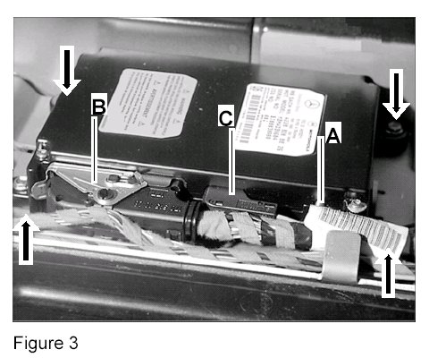 3. Remove the analog Tele Aid control module from the electronics tray behind the rear seat (Arrow, Figure 2) by removing the four M6 screws (Arrows, Figure 3).