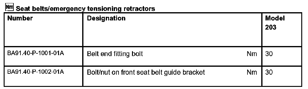 Seat Belts/Emergency Tensioning Retractors: