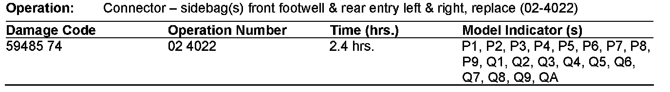 If you receive customer reports in the above model vehicles that the SRS light is illuminated and diagnostic fault code(s) B1035, B1037, B103B and/or B1039 are stored in the SRS ECU, the resistance in R12/11, R12/12, R12/20 or R12/21 ignition circuits for the sidebag squibs may be too high. This high resistance is caused by either of the following: