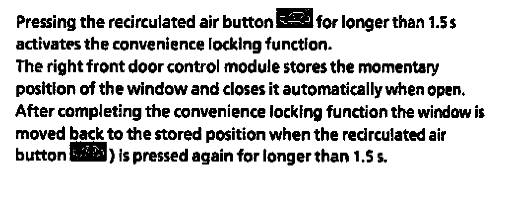 The front passenger door control module (N69/2) senses the window position of the passenger door and stores this information on the passenger compartment bus (CAN B). The pushbutton control module reads in the signal of the passenger door window position via the CAN B bus to obtain a better control quality when the window is open.