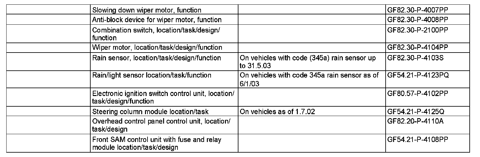 Shown on rain sensor (B38) up to 31.5.03