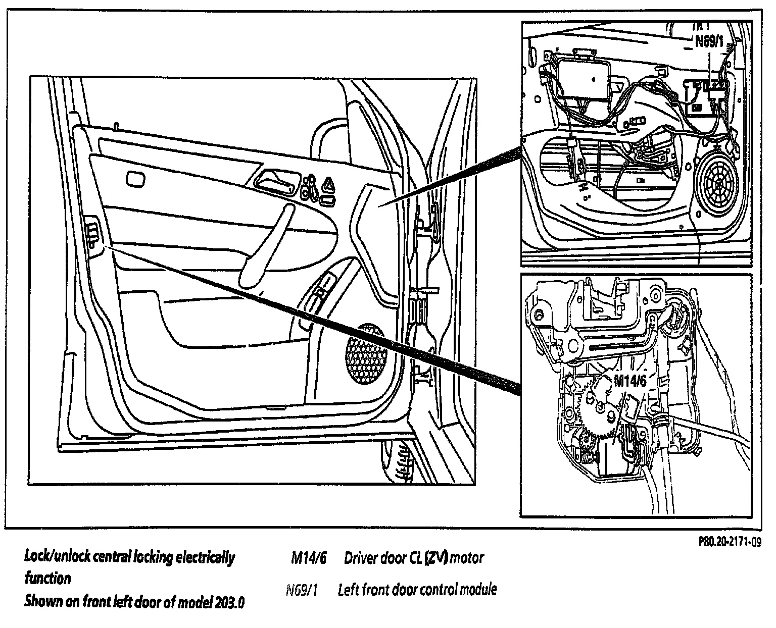 Lock/unlock Central Locking Electrically Function Shown On Front Left Door Of Model 203.0
