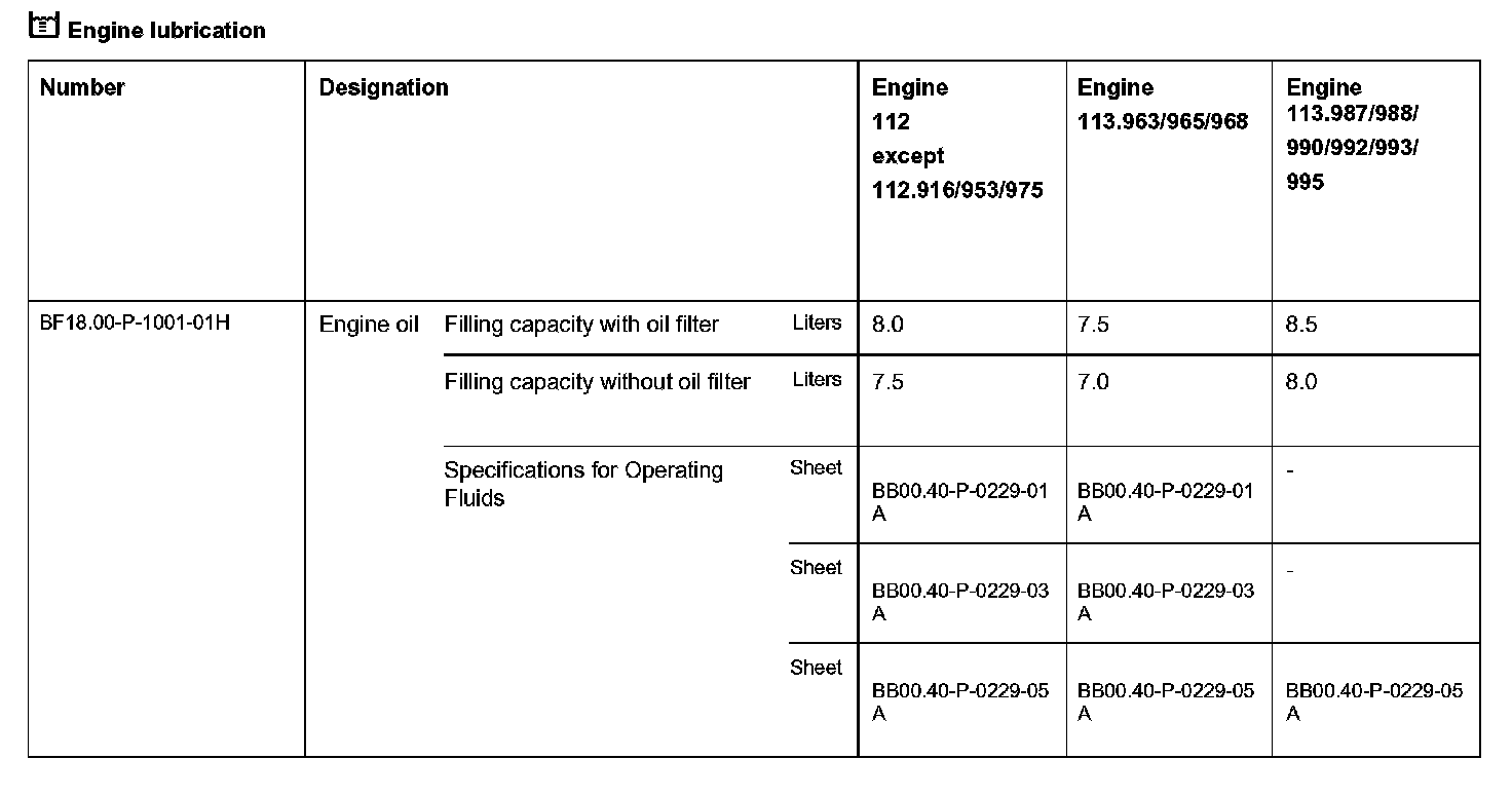 Capacities of engine lubrication system: