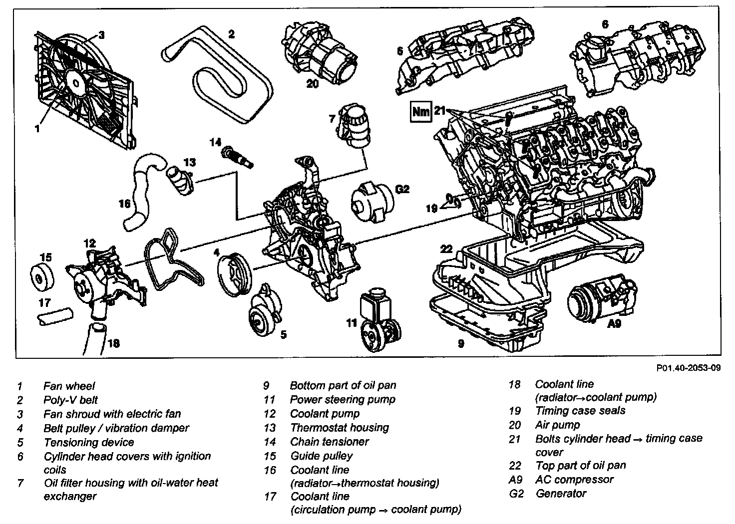 - Installation: Make sure that sealing compound does not enter the oil ducts, do not damage the cylinder head gasket and replace timing case sealing rings (19).
