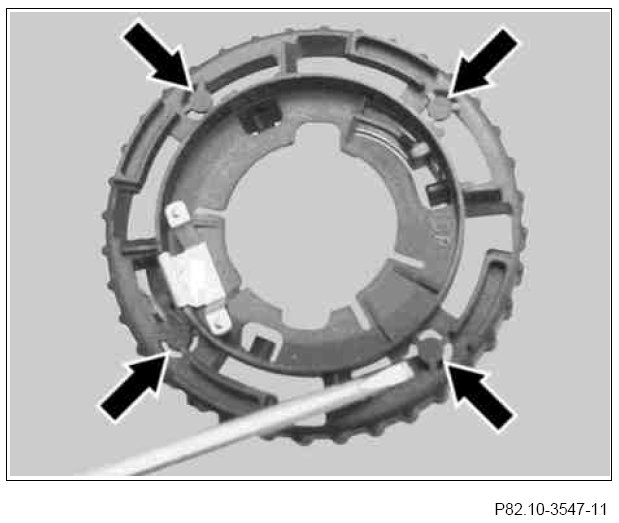10 Remove the four catch lugs (arrows) in the retaining collar.