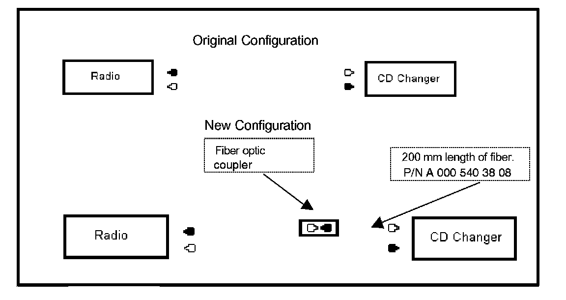 If you encounter instances of noises or static during CD Changer operation on the subject models, please install an additional length of fiber optic cable of length 2OOmm (8 inches) between the radio and the CD Changer.