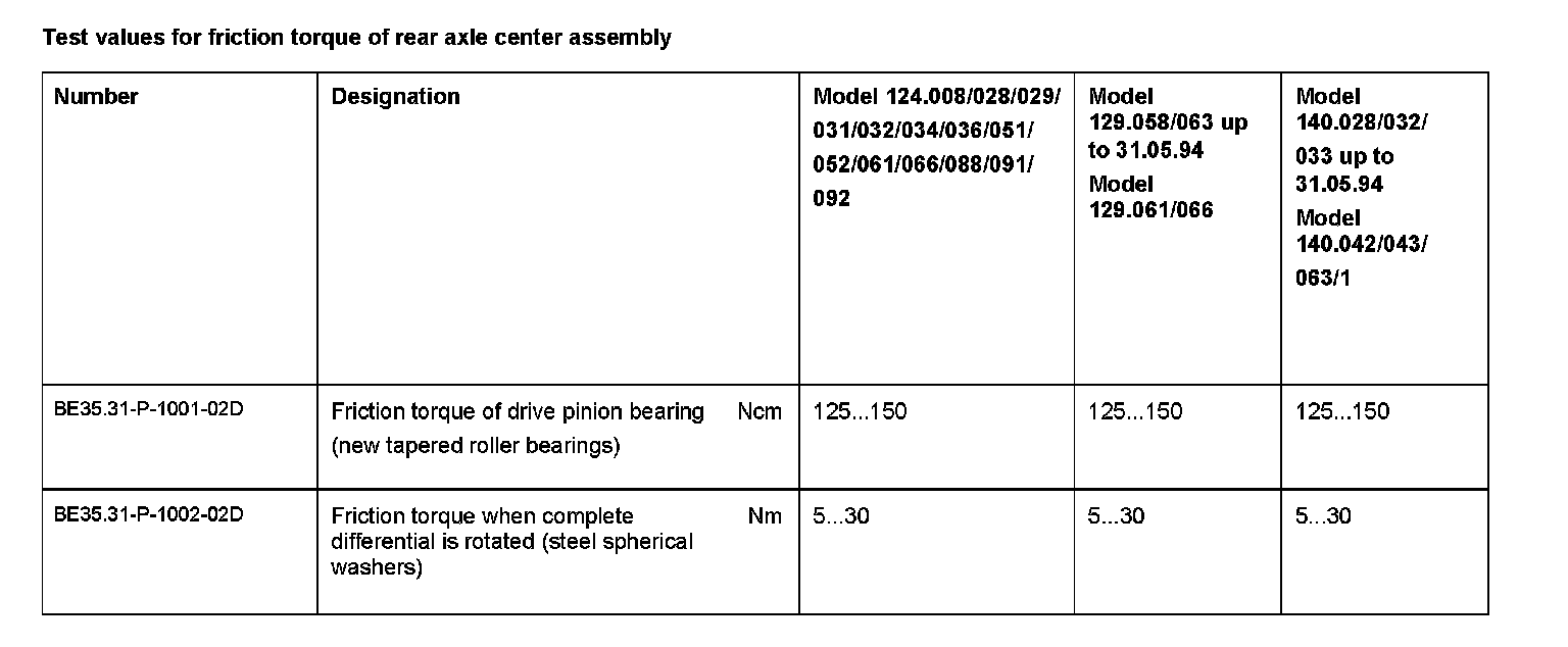 BE35.31-P-1000-02D Test values for friction torque of rear axle center assembly