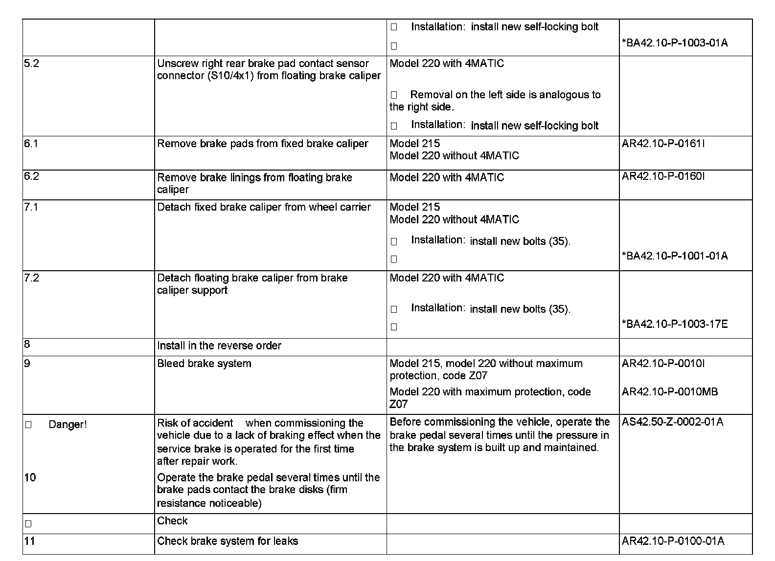 AR42.10-P-0080I Remove/Install Rear Axle Brake Caliper