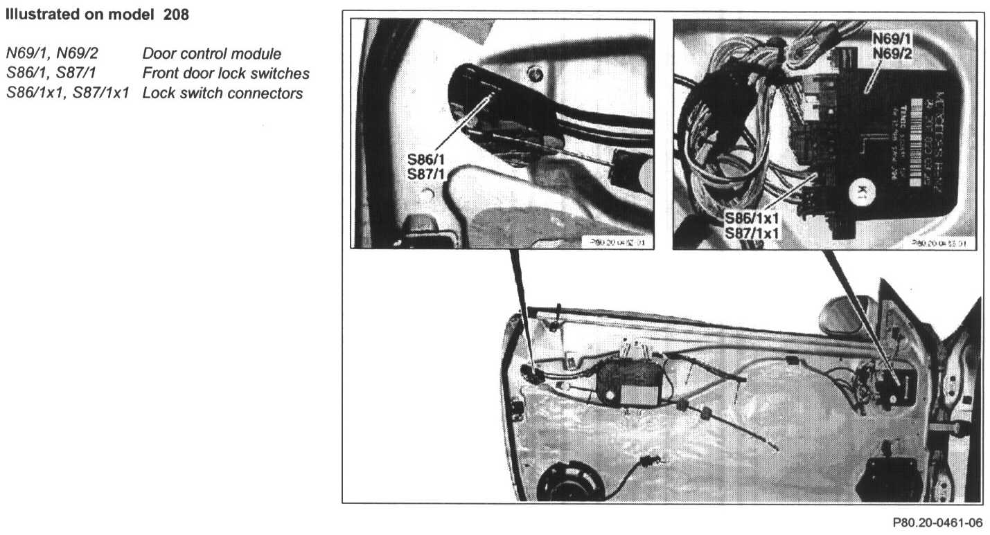 5 Pull lock switch (S86/1, S87/1) off of door lock
