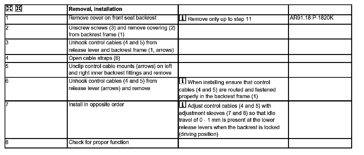 AR91.10-P-1470K Remove/Install Control Cables For Front Seat Backrest Release