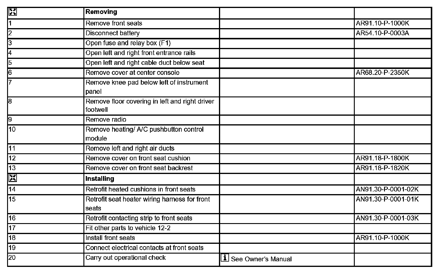 AN91.30-P-0001K Retrofitting Seat Heater For Front Seats