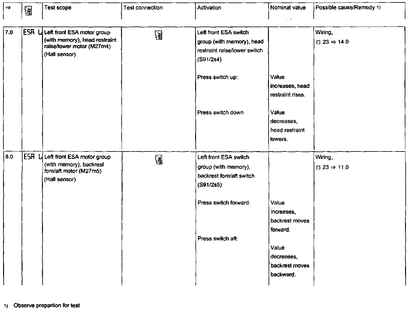 Electrical Seat Adjustment (ESA)