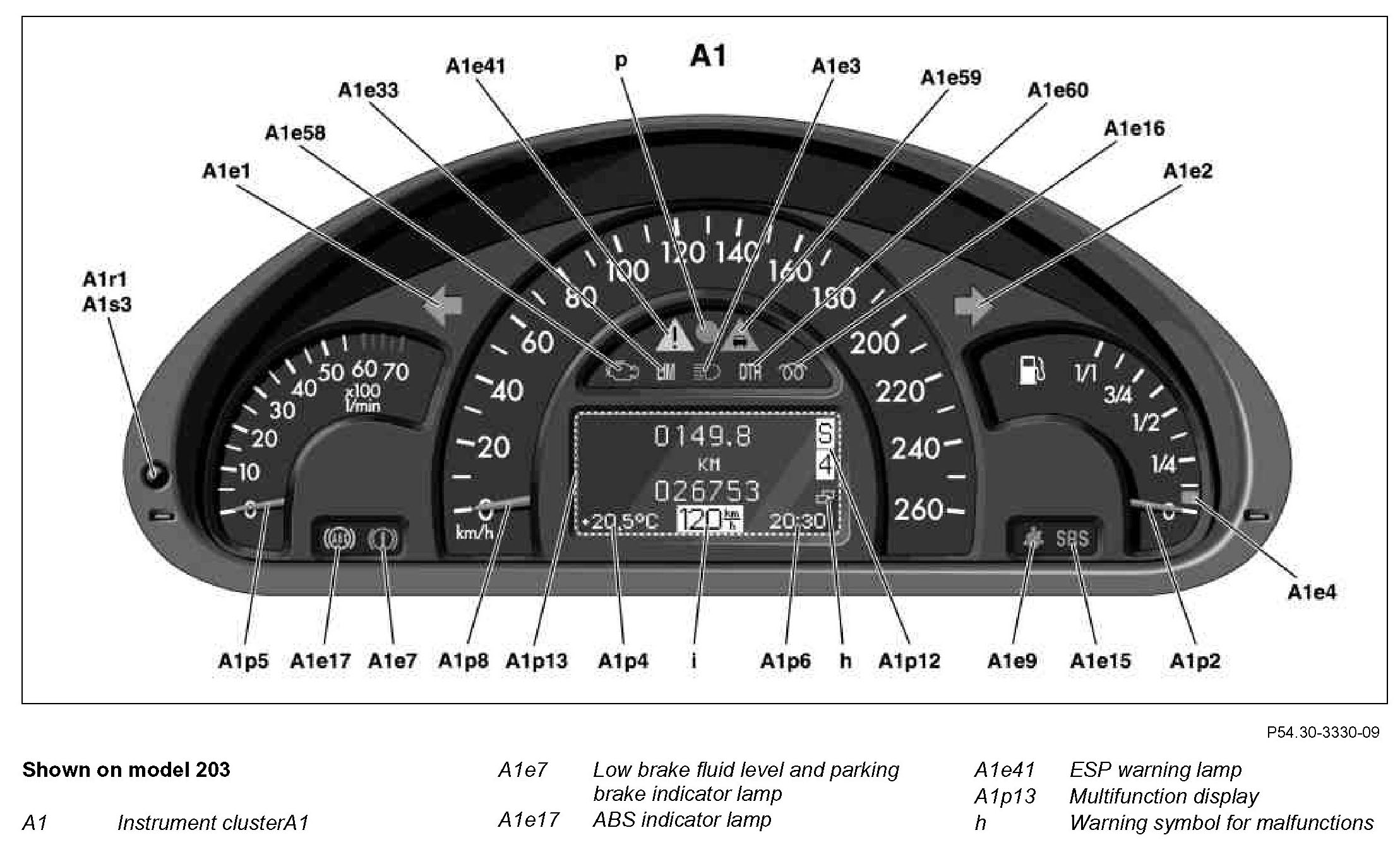 This lamp is actuated when there is a fault in the ABS system. The signal for actuating the lamp comes over the engine compartment CAN from the ESP and BAS control module (N47-5).