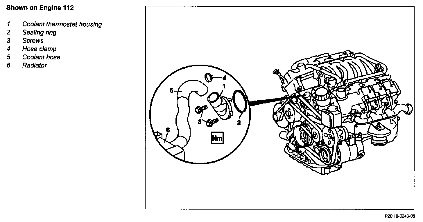 CAUTION:The coolant thermostat must not be removed from the housing. If this is done it will be destroyed. Re-installation is not possible. The housing is supplied together with the coolant thermostat for repair purposes.