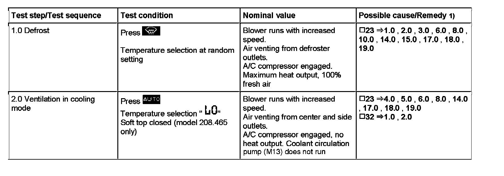 3. Check in-car temperature sensor aspirator blower by placing a small of paper ( arrow ) approximately 1/2 square " over in-car temperature sensor B10/4) vent grille with ignition ON and with soft top closed (model 206,465 only). If there is suffient ventilation the paper will remain on the vent grille,if not check aspirator blower for voltage supply and function. The after-run time for the blower motor is greater than six seconds.