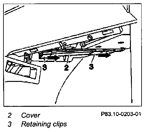 - Push the two retaining clips (3) in direction of arrow for this purpose.