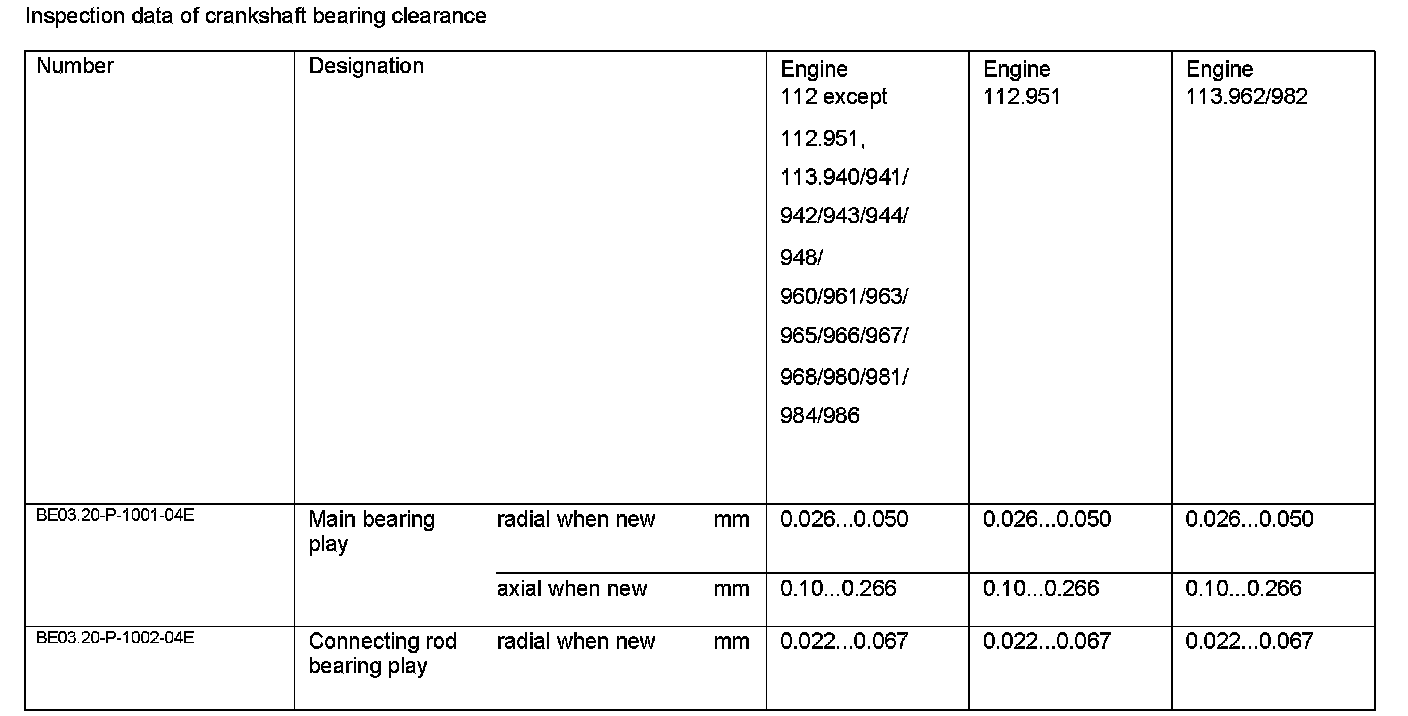 BE03.20-P-1000-04E Inspection Data of Crankshaft Bearing Clearance