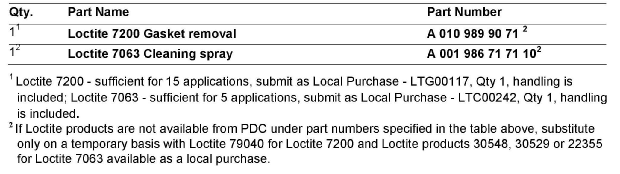 2. Observing all manufacturer application directions for product application, spray Loctite 7200 (or substitute as indicated in the parts information below) on all sealing surfaces and let alone for 10 to 30 minutes.