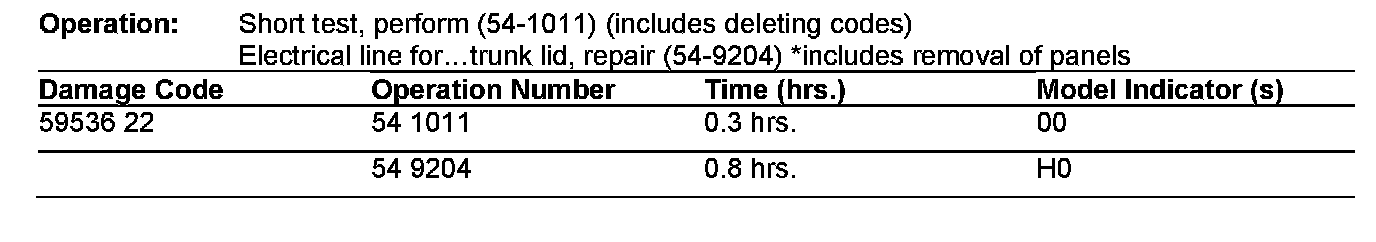 If you receive customer reports in the above model vehicles of the "summer opening feature" opening the windows, the trunk lid opening by itself or the TeleAid system repeatedly calling ATX regarding alarm activation, check the wiring harness starting at the connector for the emergency trunk opening button to where it joins the main harness. The edges of the sheet metal may make a small cut in the wire insulation which can occasionally short circuit to the trunk lid producing one of the above symptoms. This can be very hard to see but can be detected by carefully feeling along the wires with your fingers. To remedy, use cloth tape to protect the cuts in the wire harness and protect the remainder of harness (Figure 1, arrows) where it meets the edges of the underside of the trunk lid.
