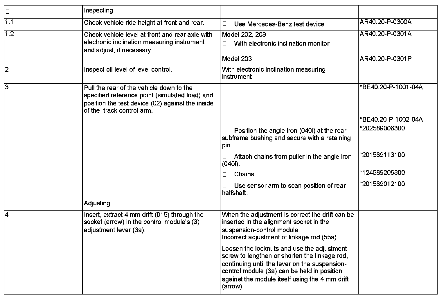 AR40.20-P-0310B Check and Adjust Reference Point For Self-Leveling Suspension