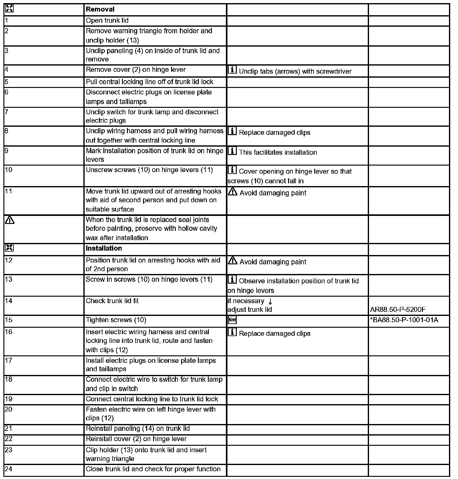 AR88.50-P-5000F Removing And Installing Trunk Lid