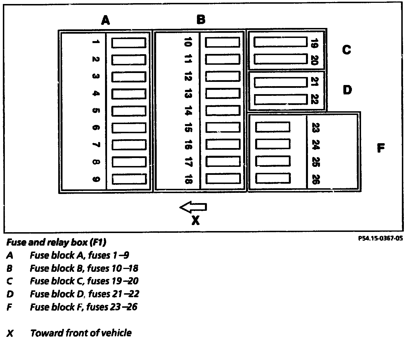 F1 - Fuse and Relay Box (In Engine Compartment)
