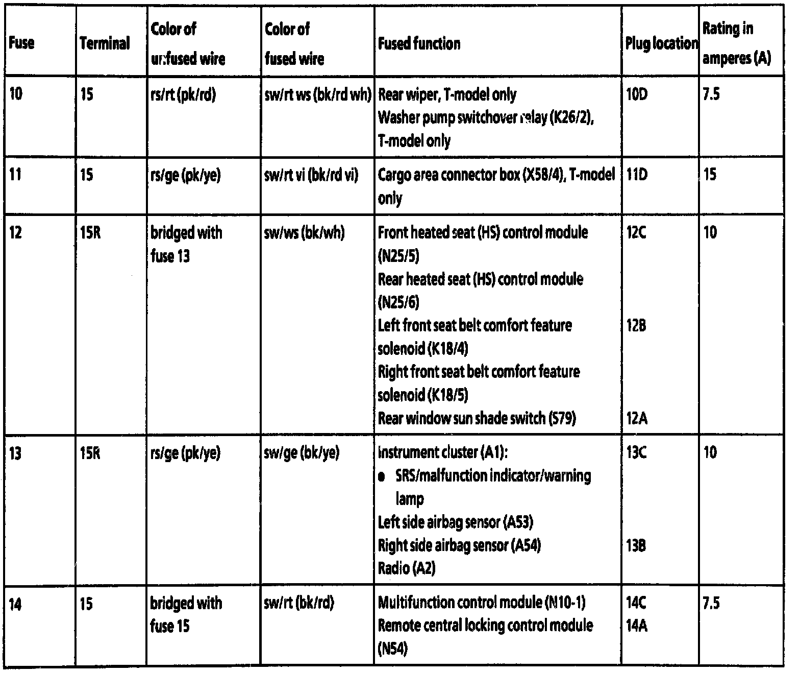 Fuse 10 - 14: