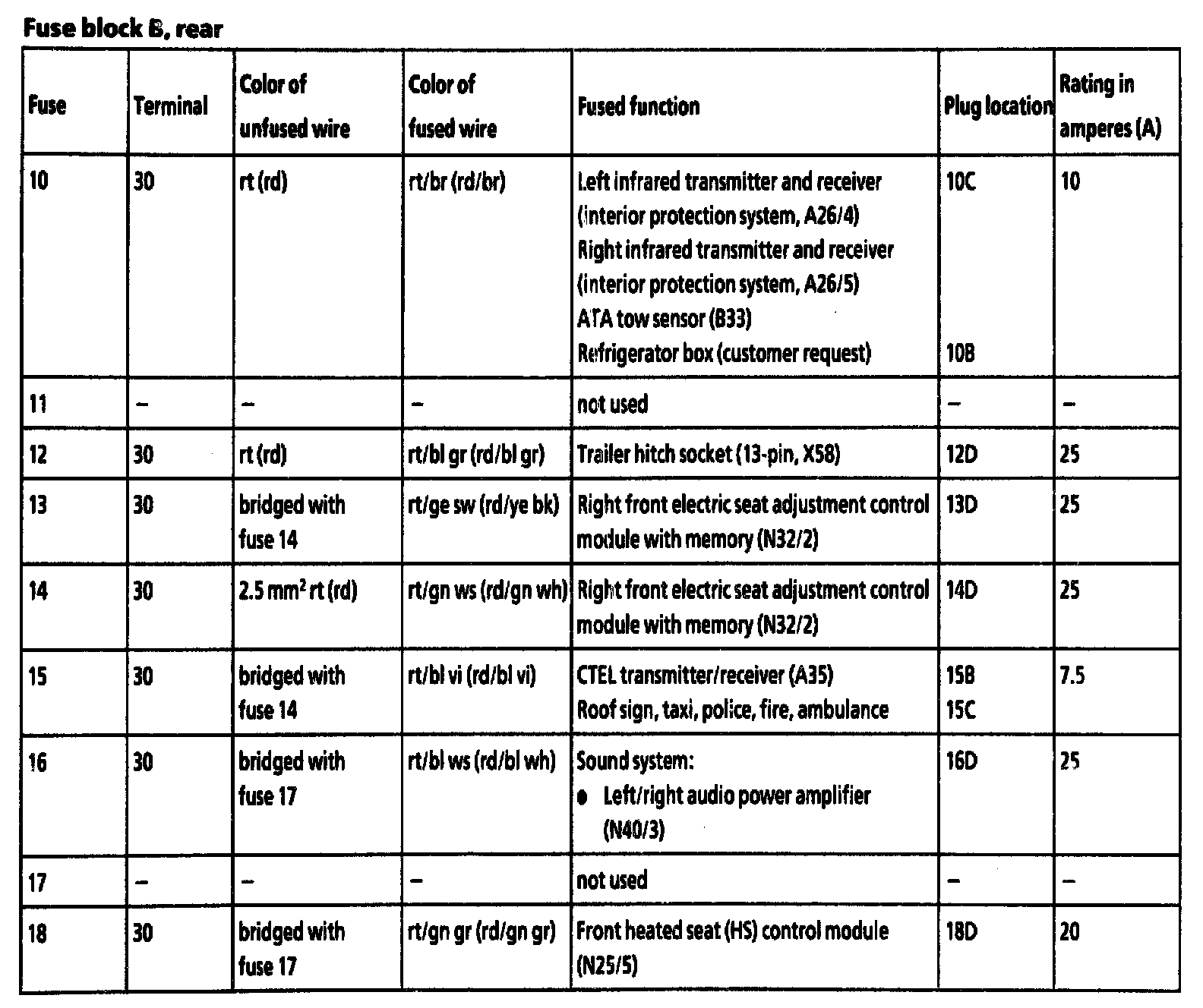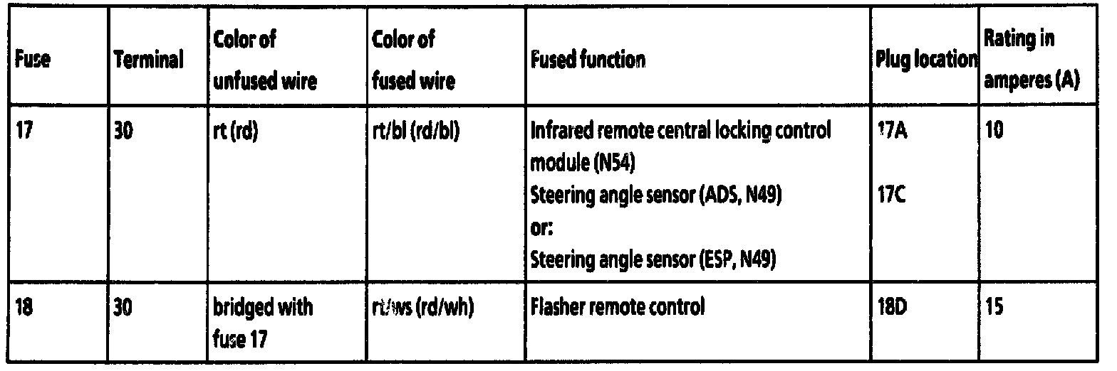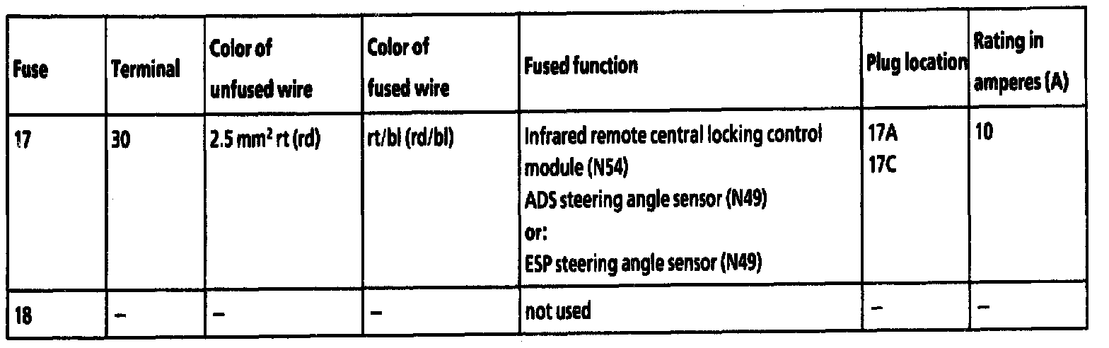 Fuse 17 - 18: