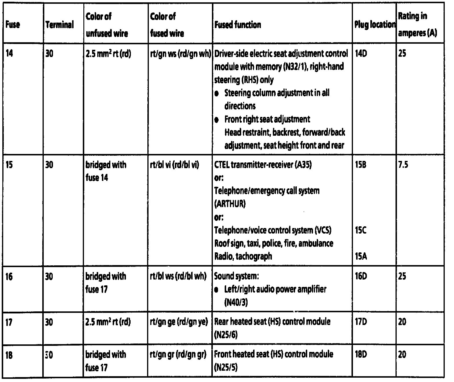 Fuse 14 - 18: