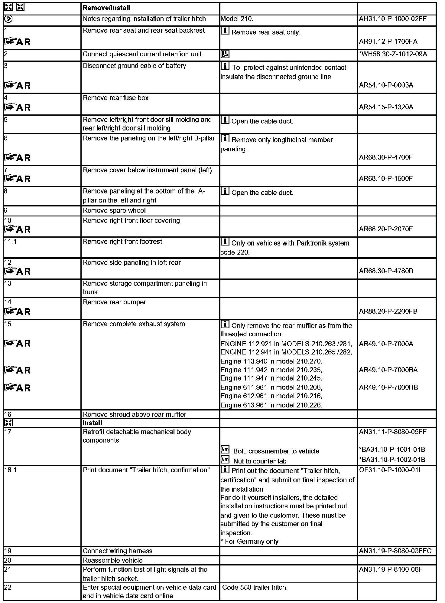 Steps 1 - 22: