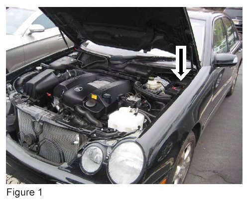 3. Plug the Star Diagnosis in the OBD Diagnosis Port. The OBD diagnostics port is a 38-pin port in the wiring harness compartment in the right, rear corner under the hood (Figure 1 and 2).