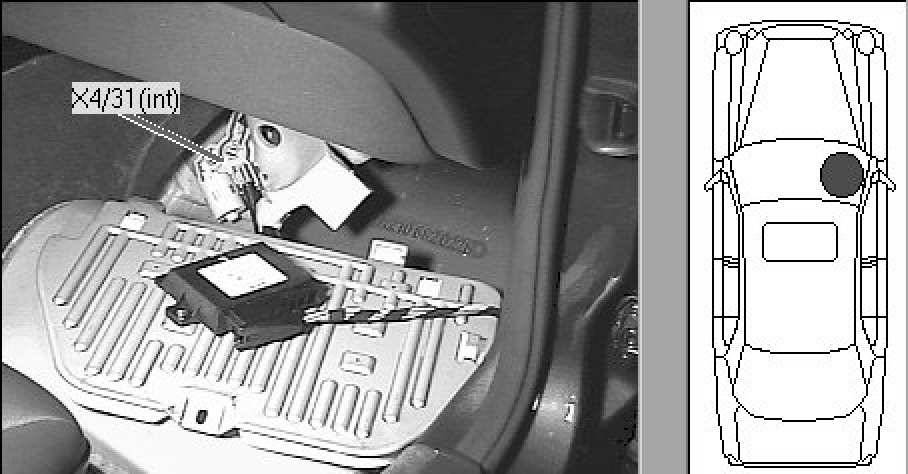 Interior, upper passenger footwell (passes through firewall, interior side shown)