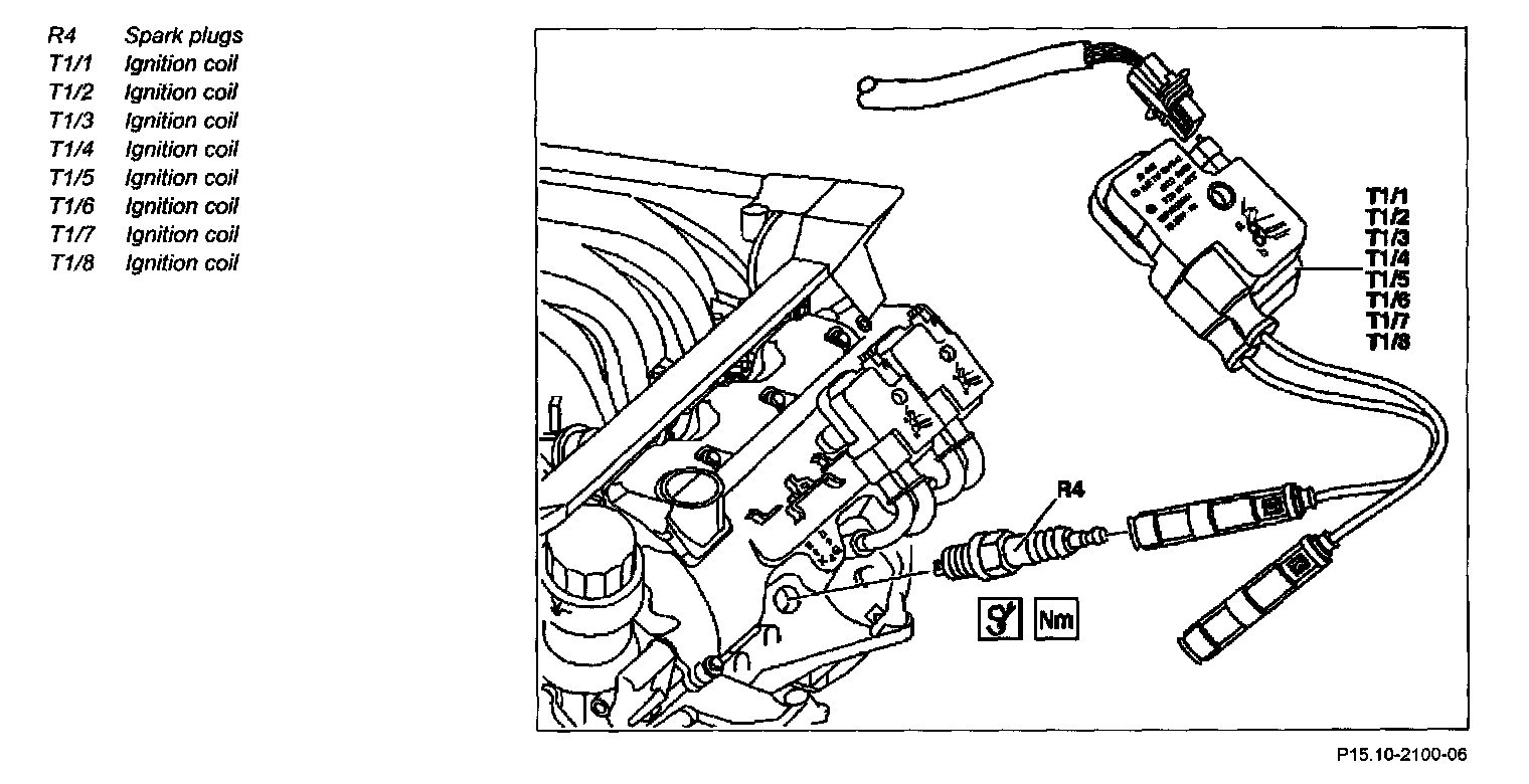 3 Remove ignition coil (T1/1 to T1/6) or (T1/1 to T1/8)