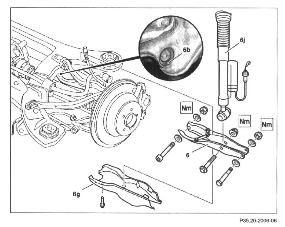 7 Check rubber mount (6b) of spring link (6) in rear axle carrier