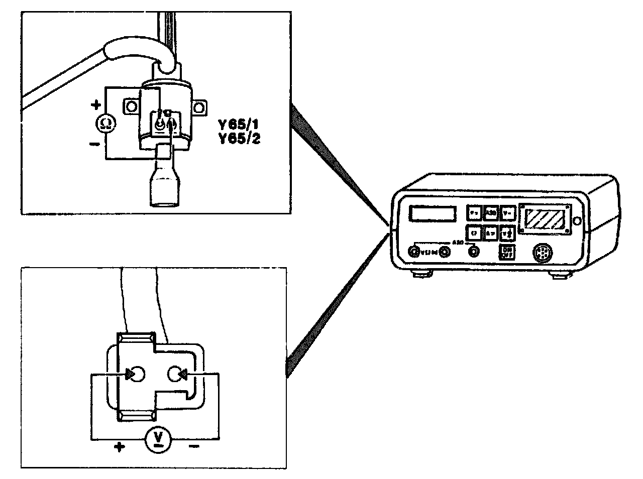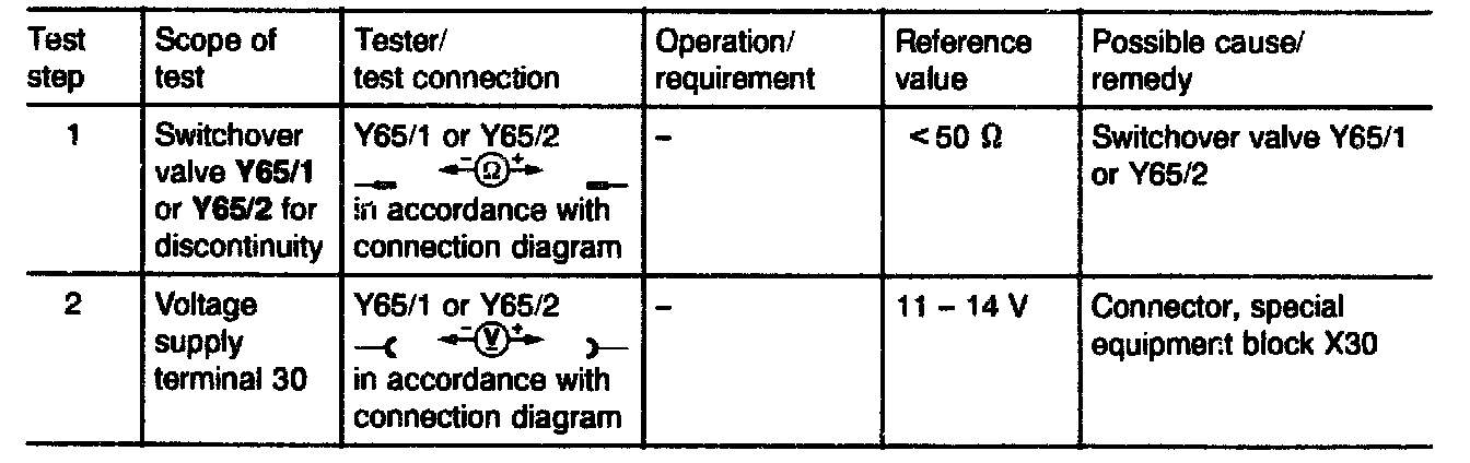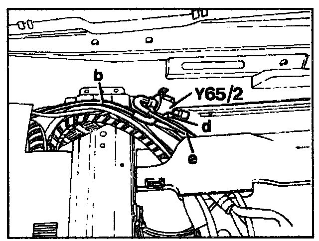 4 Expose switchover valve Y65/1 or Y65/2 and pull off electrical connection (d).