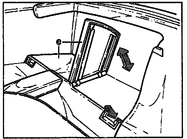 1 Open cover (e) for rear luggage compartment.