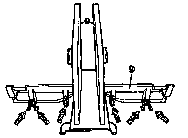 2 Remove housing (g) for rear luggage compartment (10 screws, arrows)