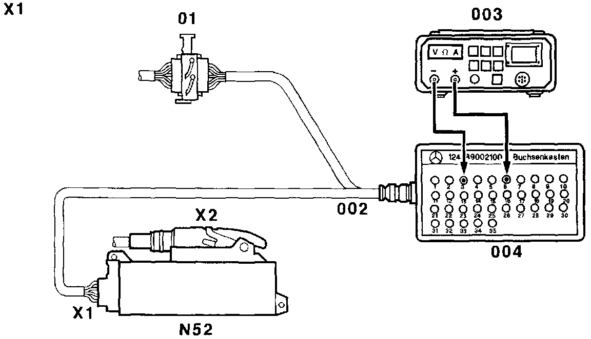 2. Bridge sockets 1 and 3 of connector (X11/12) in passenger footwell see Figure 1 (only necessary when testing with socket box). Connector Locations