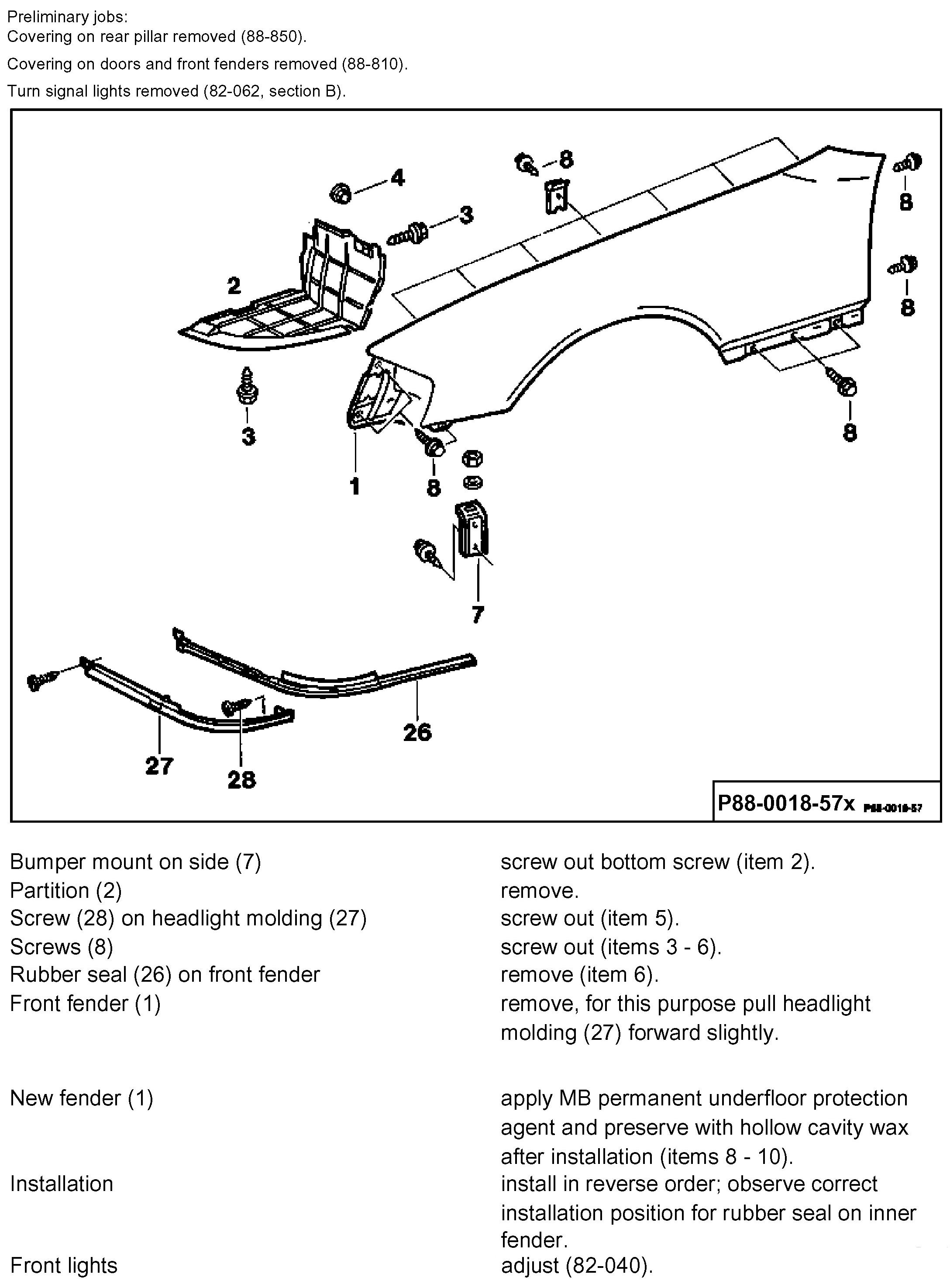 8 Apply MB permanent underfloor protection agent to new fender where applicable.
