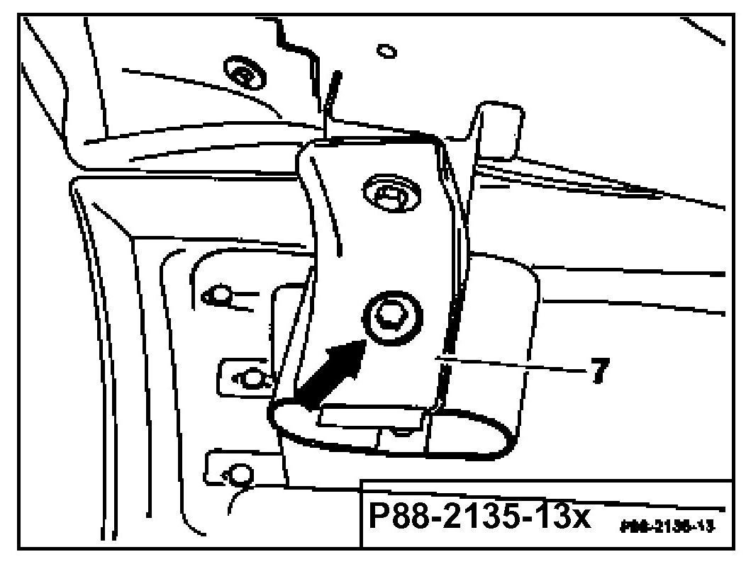 3 Screw out screws (arrows) on front pillar and on main frame member.