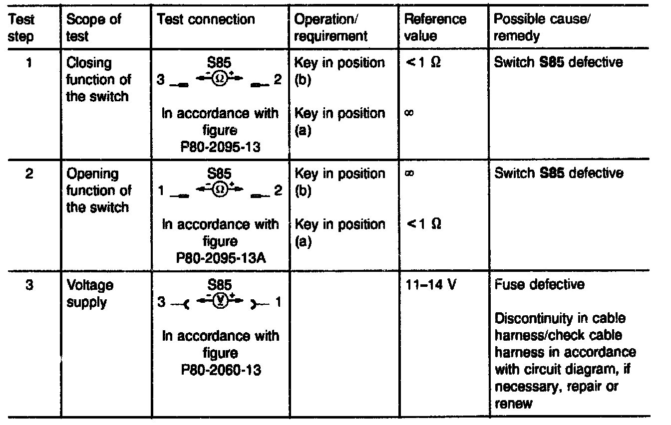 2. Check continuity of control cable from switch to supply pump (red, green), in accordance with circuit diagram.