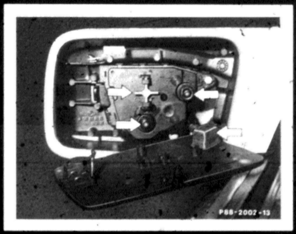 NOTE: The mirror glass can only be installed when the drive tappets for the electric drive are retracted and aligned for acceptance of the mirror glass.