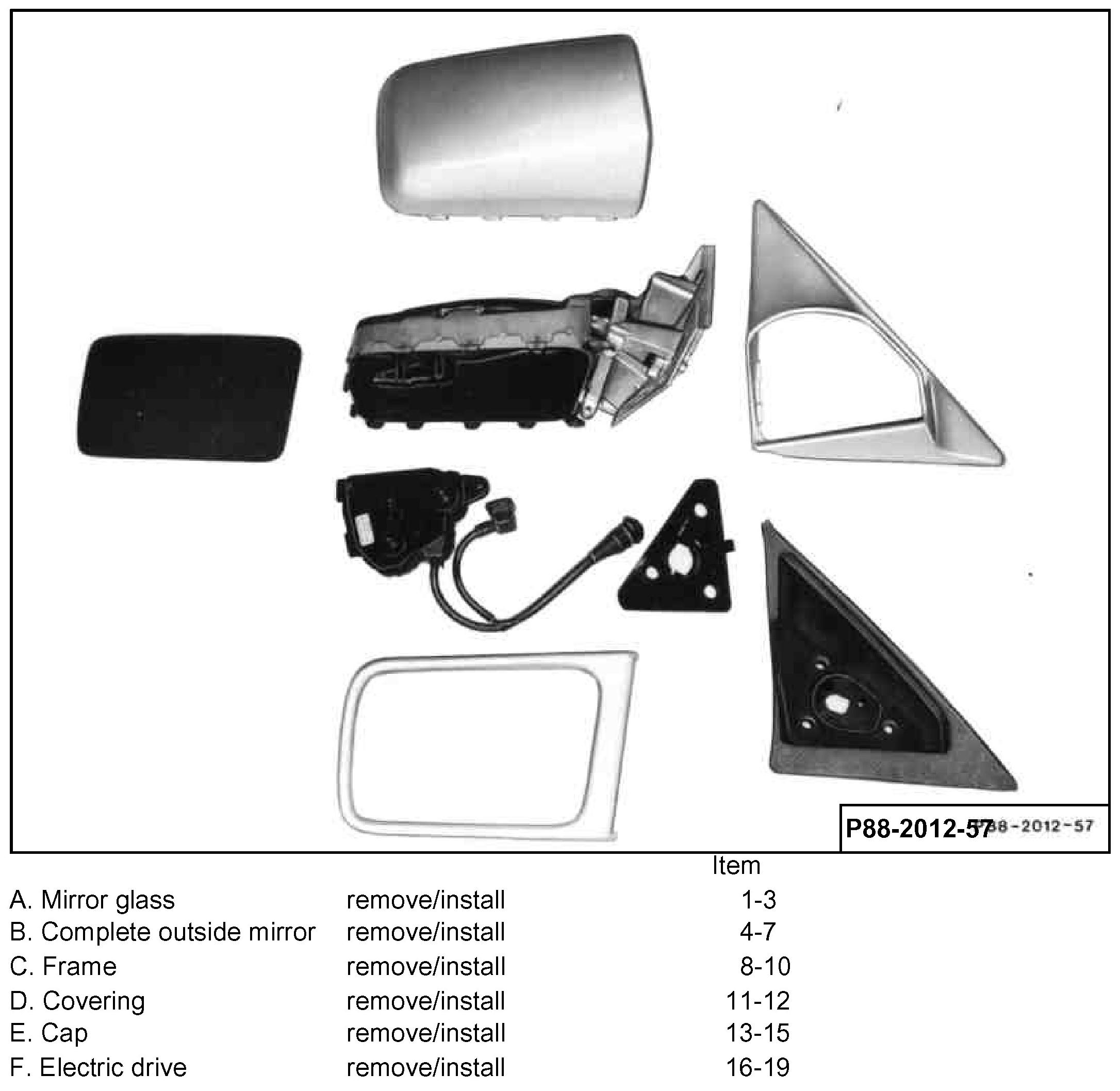 3 Install in opposite order (mirror should catch audibly, arrows).
