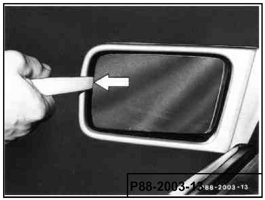 1 Press mirror glass out with plastic wedge, disconnect plug for mirror heater.