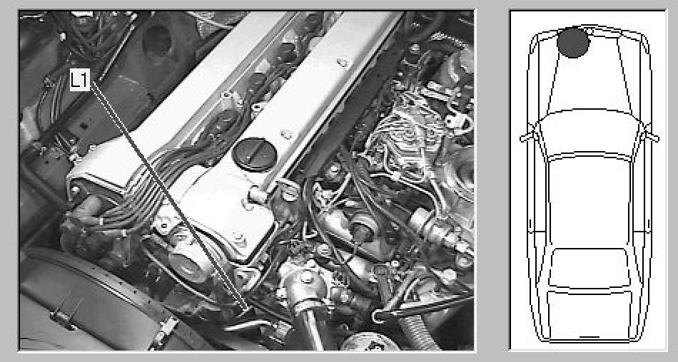 Engine compartment, left front of engine, just above harmonic balancer (not visible in photo)