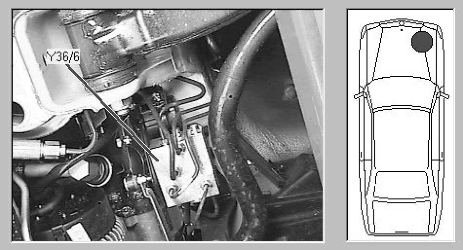 Beneath vehicle, right front, near alternator, on frame rail