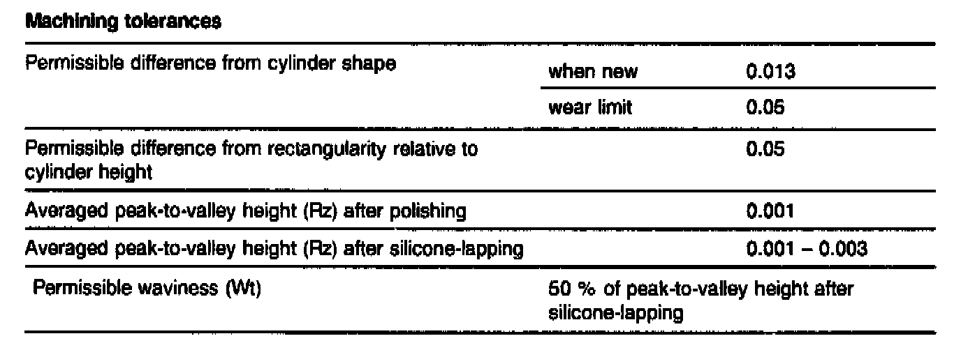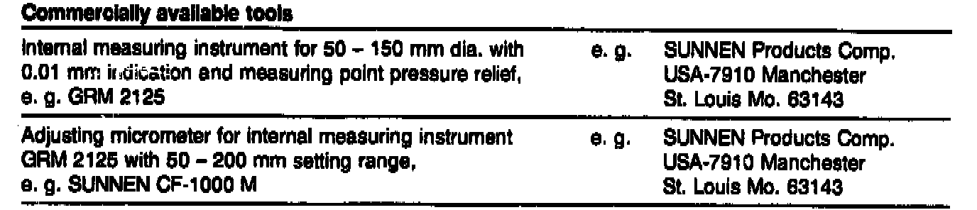 Use a measuring instrument with measuring point pressure relief for measuring the cylinder bores otherwise the cylinder contact surface will be scored as a result of the measuring point bearing surface and the measuring point bearing surface of the internal measuring instrument will suffer premature wear.